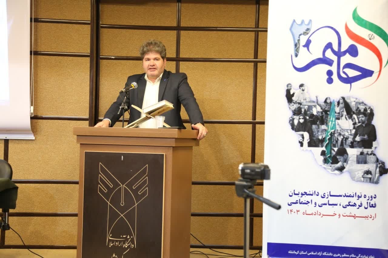 سرپرست دانشگاه آزاد اسلامی استان کرمانشاه، خطاب به دانشجویان تأکید کرد: در طرح «حامیم ۳» به شما این فرصت داده شده تا از دانش و تجربه استادان خود سود ببرید و بهصورت موفق در جامعه حضور یافته و در تمام امور جامعه نقشآفرینی کنید و دخیل باشید.