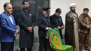 خادمان آستان قدس رضوی با پرچم متبرک حرم مطهر امام رضا علیهالسلام در دانشگاه آزاد اسلامی واحد کهنوج حضور یافتند.