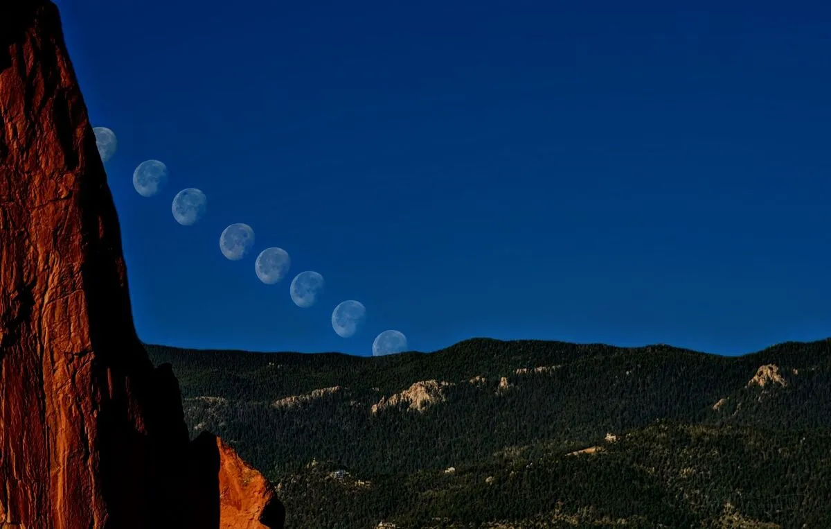 جرمی لیکنس (Jeremy Likness) عکاس در 26 مه 2024 ساعت 5:06 صبح به گاردن آف گادز (Garden of the Gods) در کلرادو اسپرینگز، ایالات متحده آمریکا رفت. او با استفاده از دوربین سونی A7R IV با لنز 135 میلی متری سامیانگ از غروب ماه در پشت صخرهها و یک رشته کوه عکس گرفت. جرمی از AstroSurface برای تراز کردن عکسها و از برنامه PixInsight برای ترکیب آنها با یکدیگر استفاده کرد.
