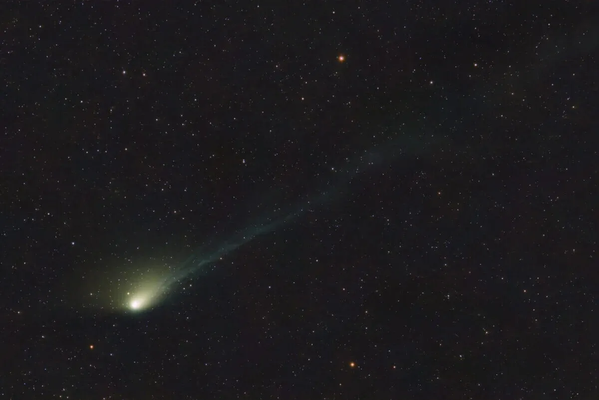 کریس اسچور (Chris Schur) اهل پیسون از آریزونا است. دنبالهدار 13P/Olbers در 30 ژوئن به نزدیکترین فاصله به خورشید رسید. دنبالهای یونی ضعیف اما دقیق داشت که به نظر میرسید از رأس آن دور میشود. این تصویر با استفاده از یک دوربین 8 اینچی f/2 RASA با 30 دقیقه داده گرفته شده است.