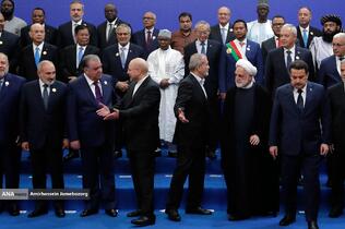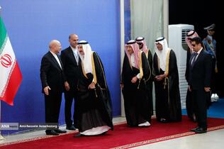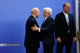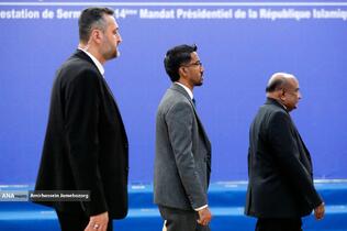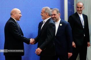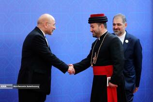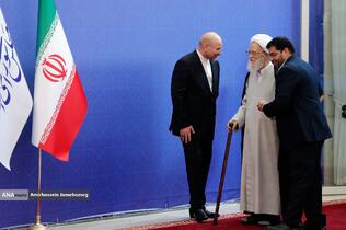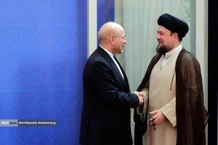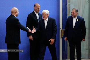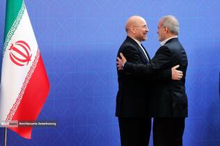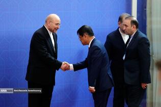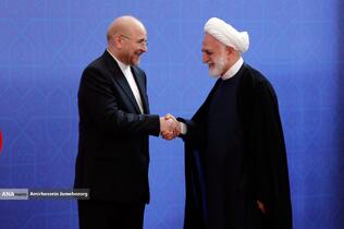 استقبال رئیس مجلس شورای اسلامی از مهمانان مراسم تحلیف رئیسجمهور