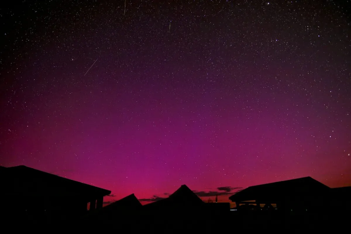 آلن هوانگ (Allen Hwang) اهل دمینگ، نیومکزیکودر روز 12 آگوست، در حدود ساعت 12:30 به دنبال شهابهای برساووشی بود که در افق شمالی "آسمان را به رنگ صورتی ساده" دید. این پدیده ناشی از طوفانهای ژئومغناطیسی قوی بود. او توانست تصویر را با نوردهی 20 ثانیه ای به وسیله دوربین DSLR نیکون ثبت کند. او از ISO 1600، لنز زوم 24 میلی متری و تنظیم f/2.8 استفاده کرد.