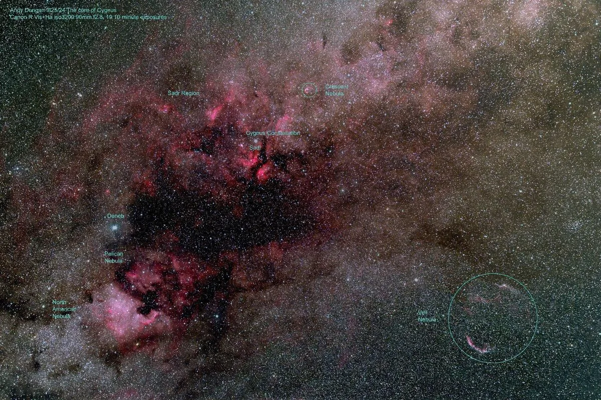 این تصویر از هسته صورت فلکی ماکیان در تاریخ 2024/09/24 ساعت 22:00 توسط اندی دانگان (Andy Dungan) نزدیک کوتوپاکسی ایالات متحده آمریکا ثبت شده است. این صورت فلکی شگفت انگیز است زیرا اجرام زیبای زیادی در نزدیکی هم جمع کرده که تصویر آنها را نشان میدهد.