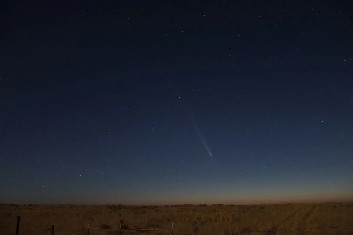 تصویر ترکیبی از دو عکس تله فوتو است که حدود 26 درجه در سراسر آسمان کشیده شده و از گذرگاه گیتس در توسان، آریزونا به سمت غرب میگذرد. در آن شب ناظران دنباله دار همچنین توانستند خوشه ستاره ای کروی M5 و دنباله دار کم نور 13P Olbers را نیز ببینند.
