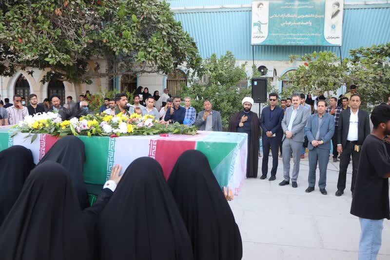 به گزارش خبرنگار آنا، به همت بسیج دانشجویی دانشگاه آزاد اسلامی واحد بندرعباس همزمان با ایام شهادت حضرت فاطمه زهرا سلامالله علیها، آیین استقبال و تشییع پیکر پاک و مطهر شهید گمنام دفاع مقدس با حضور خانواده معزز شهدا و ایثارگران، مردم، مسئولان، دانشجویان، استادان و جمعی از کارکنان در این واحد دانشگاهی برگزار شد.