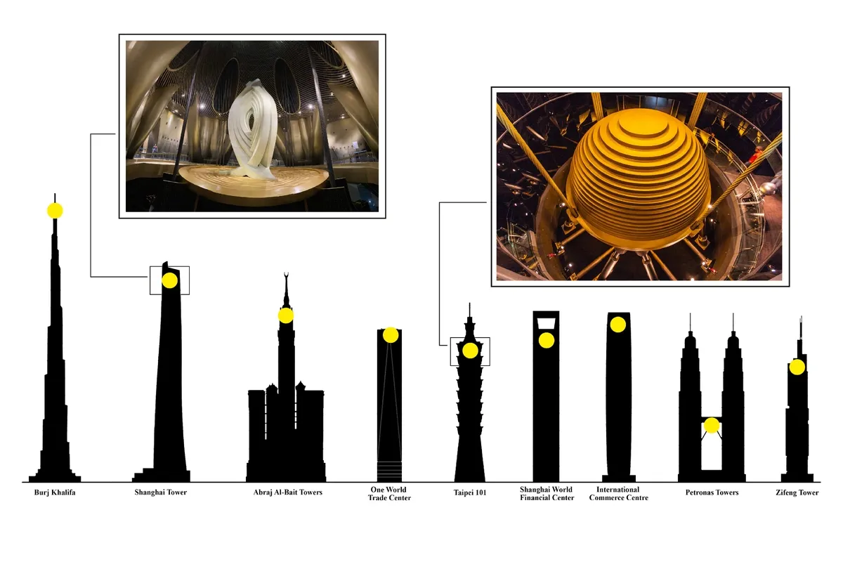 بلندترین ساختمان جهان نیز به میراگرهایی مجهز است که پایداری آن را تضمین میکنند.