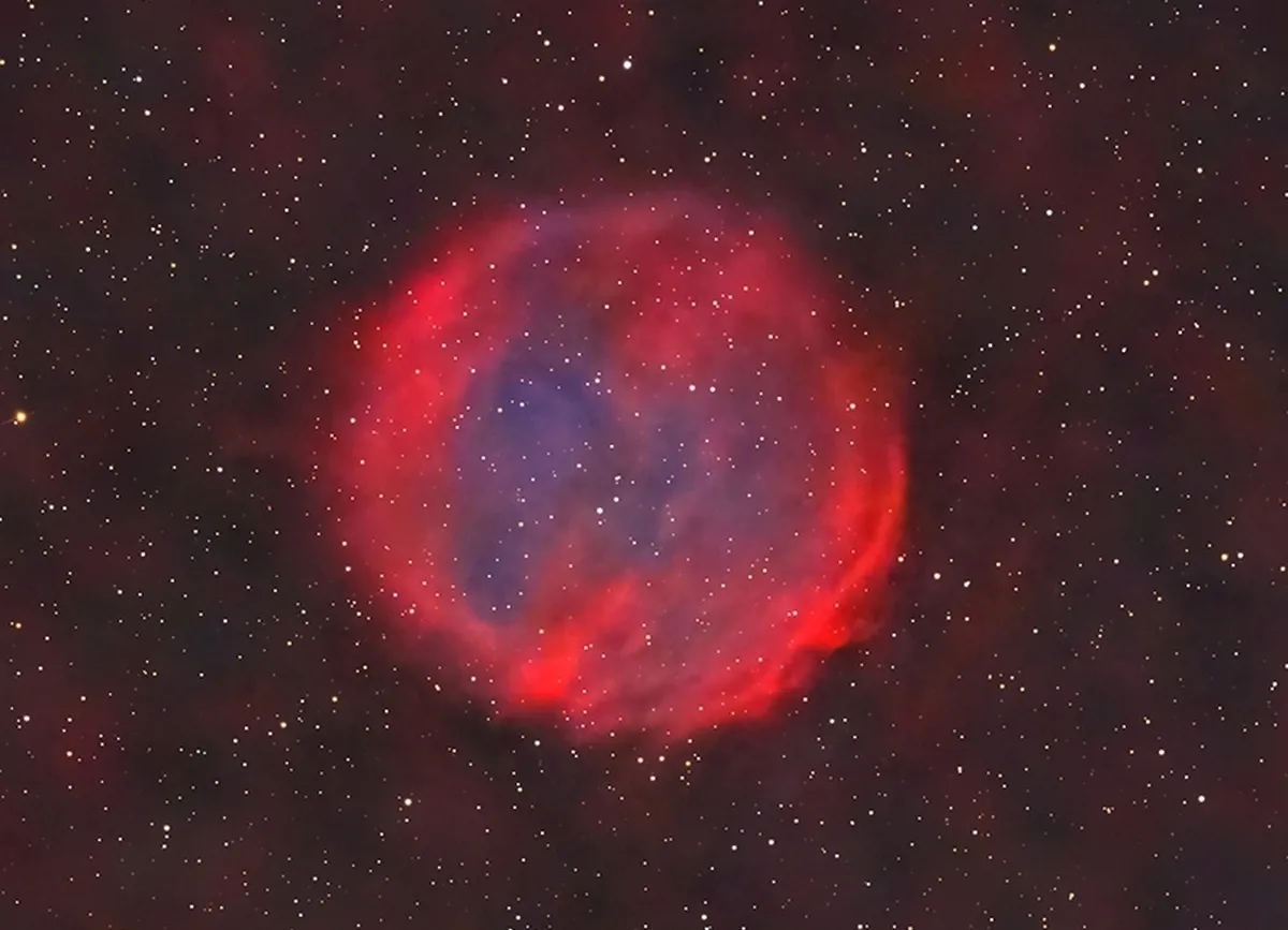 این سحابی سیارهای بسیار کم نور است و عکاس برای ثبت این تصویر با استفاده از ۲ تلسکوپ بیش از ۶۳ ساعت سیگنال جمع آوری کرده و برای اولین بار برای ادغام بیش از ۱۰۰ ساعت وقت گذاشته است.