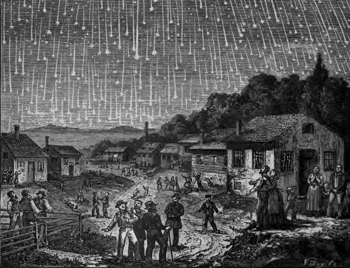 با این حال در دوران گذشته تفاسیر از این رویداد متفاوت بود. به عنوان مثال بارش شهابی بزرگ سال ۱۸۳۳ یکی از عجیبترین رویداد‌های نجومی به شمار می‌رود. در شب ۱۲ تا ۱۳ نوامبر ۱۸۳۳، آسمان شرق آمریکای شمالی صحنه یک نمایش بی‌نظیر از شهاب‌ها بود. این رویداد به قدری چشمگیر بود که صد‌ها هزار شهاب در آسمان ظاهر شد و به نظر می‌رسید که اجرام از صورت فلکی شیر (اسد) سرازیر می‌شود. بسیاری از مردم، از جمله آبراهام لینکلن جوان در این شب بیدار بودند و با حیرت به تماشای آسمان پرستاره پرداختند.