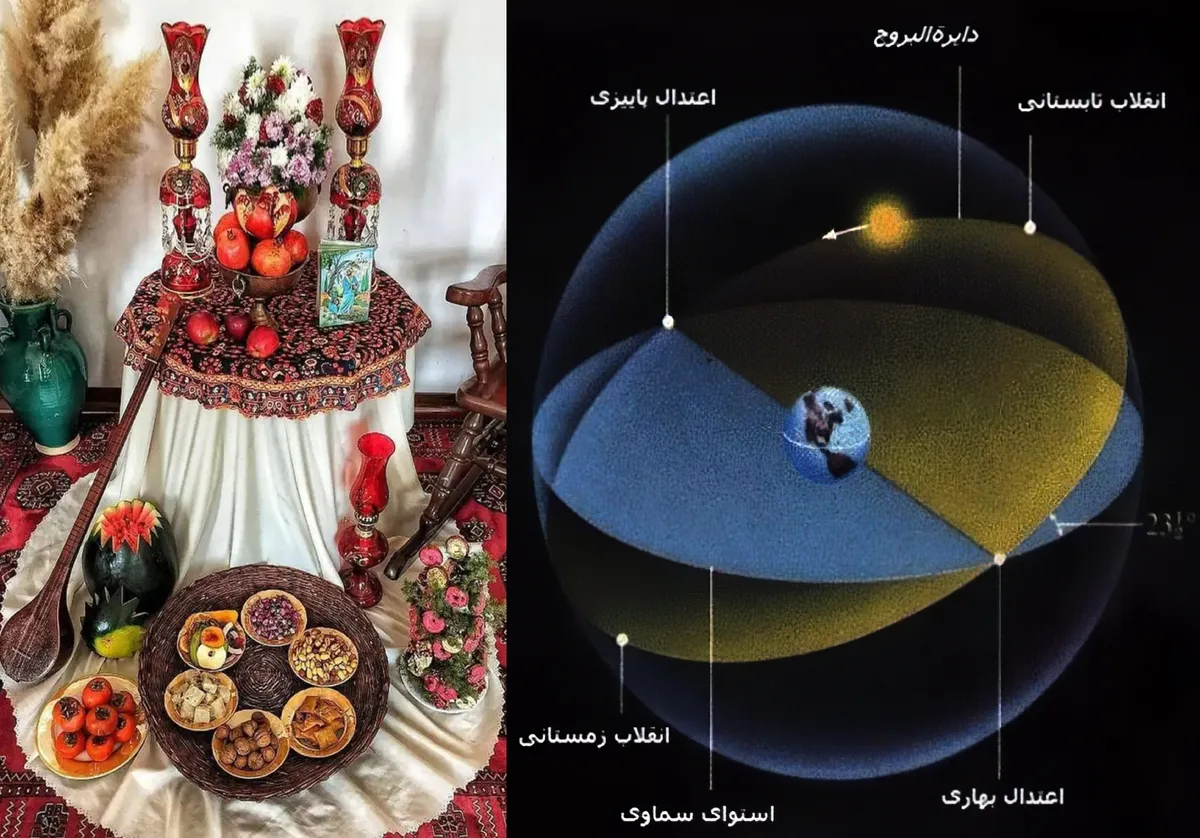 شب یلدا در فرهنگ ایرانی نمادی از پیروزی نور بر تاریکی است. این شب که با سنتهایی مانند خواندن اشعار حافظ، مجالس خانوادگی و خوردن انار و هندوانه و سایر تنقلات همراه است، بازتابی از شناخت دقیق ایرانیان از طبیعت و چرخههای کیهانی به شمار میرود. از منظر علمی، شب یلدا مصداق درک ایرانیان از تغییرات طبیعی زمین و ارتباط آن با موقعیت مداری خورشید است.
