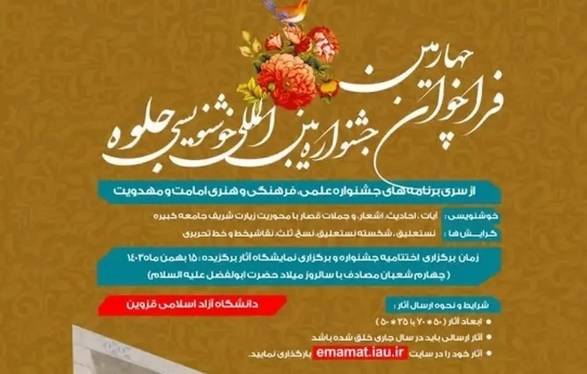 نگاه هنرمندان خوشنویس به جشنواره جلوه با بیش از 400 اثر ؛ 20 دی پایان مهلت