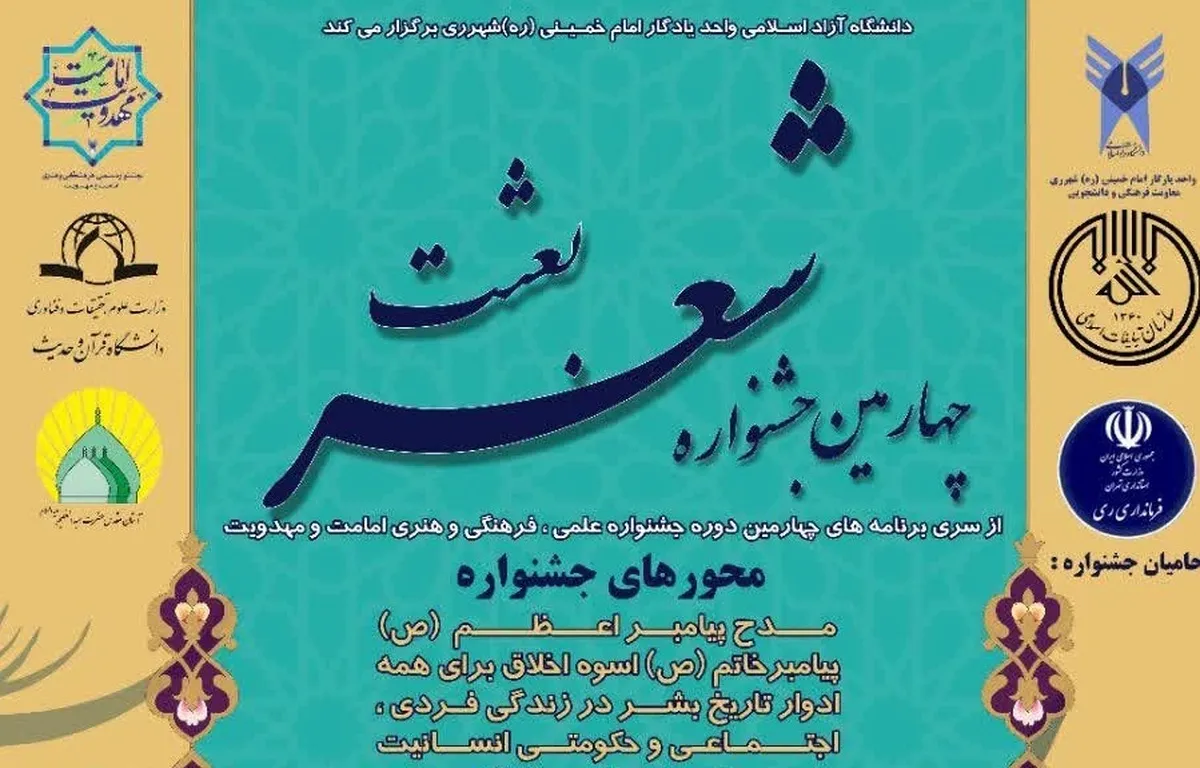 وی افزود: از خصوصیات و خصیصههای ذاتی پیامبر (ص) که جهان امروز نیازمند الگوبرداری از اوست، یکسان بودن سیره گفتار و سیره کردار و عملی نبی مکرم اسلام (ص) است. واحد یادگار امام (ره) مفتخر به میزبانی چهارمین دوره جشنواره شعر بعثت در ۹ محور شامل؛ مدح پیامبر اعظم (ص)، پیامبر خاتم (ص) اسوه اخلاق برای همه ادوار تاریخ بشر در زندگی فردی، اجتماعی و حکومتی، انسانیت و رسالت پیامبر در تکوین دین الهی، حسن خلق پیامبر (ص)، پیامبر اعظم (ص) محور و الگوی ایجاد وحدت در امت اسلامی، بعثت و سبک زندگی اسلامی، بعثت و جهاد تبین، بعثت و الهامبخشی روحیه ایستادگی و مقاومت در برابر ظلم و مفاهیم زیارت جامعه کبیره است.