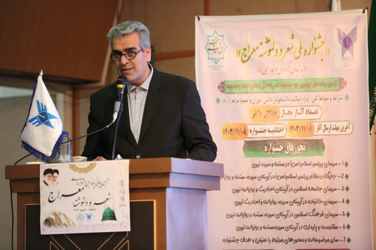 در ادامه حجت الاسلام والمسلمین امین معظمی گودرزی مسئول نهاد نمایندگی رهبری در دانشگاه آزاد اسلامی استان کرمانشاه با تبریک عید مبعث به حاضران در جشنواره با اشاره به آیاتی از قرآن کریم منتی که خداوند با رسالت پیامبر بر بندگان مومنش نهاده است، نعمتی بزرگ را برای بندگانش هدیه کرده است را مورد اشاره قرار داد و افزود: خداوند رسولی از جنس مومنین برای ایشان مبعوث کرد و برانگیخت و این نعمت الهی پیامبران از جنس خود مردم و انسان‌ها هستند و درد آشنای آن امتی که برای آنها فرستاده شده‌اند.
