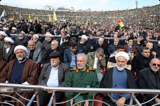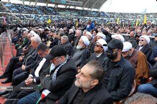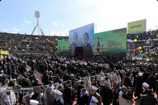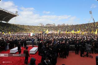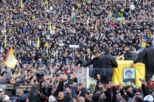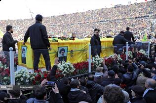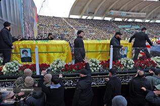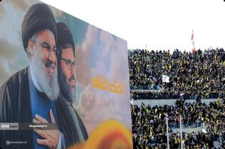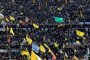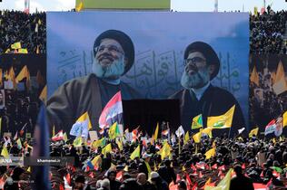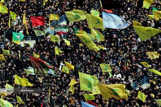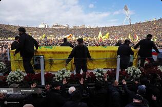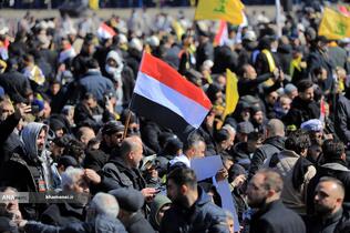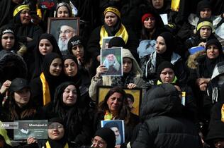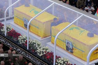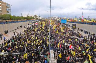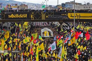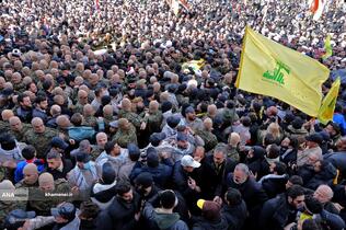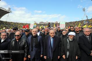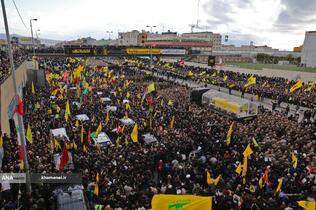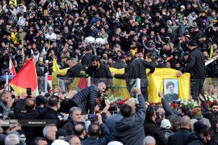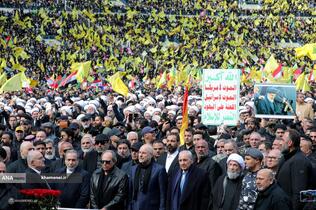 بدرقه پیکر شهدای مقاومت با شعار لبیک یا نصرالله در "بزرگترین تجمع انسانی تاریخ لبنان" با حضور نمایندگانی از ۷۹ کشور جهان برگزار شد.