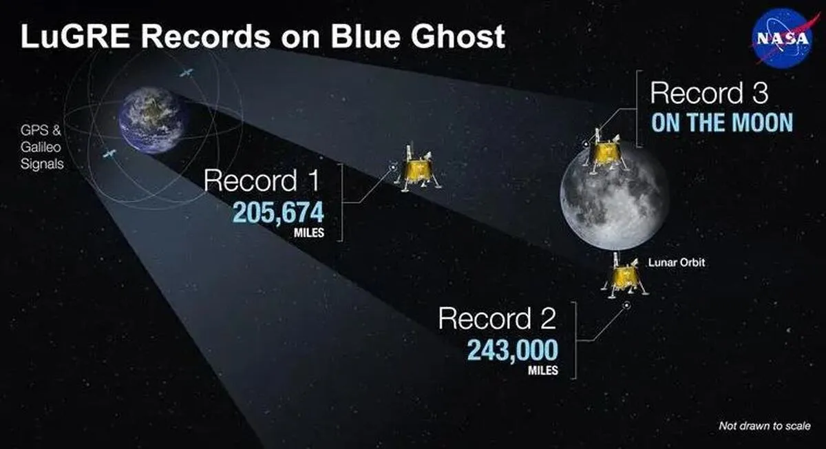 در یک پیشرفت تاریخی، مأموریت مشترک ناسا و آژانس فضایی ایتالیا (ASI) توانست نخستین بار از سیگنال‌های سامانه‌های ناوبری ماهوارهای زمینی (GNSS) برای تعیین موقعیت بر روی سطح ماه استفاده کند. این دستاورد که توسط محموله LuGRE روی فرودگر «بلوگاست» انجام شد، نشان می‌دهد که فضاپیماهای ماهی می‌توانند بدون وابستگی به اپراتورهای زمینی، به‌طور خودکار مسیر خود را پیدا کنند.
