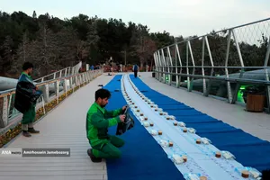 سفره‌ای به طول ۲۷۰ متر بر روی پل طبیعت به میزبانی منطقه فرهنگی گردشگری عباس آباد شامگاه شنبه ۲۵ اسفند ۱۴۰۳ با حضور شهروندان روزه دار برگزار شد.