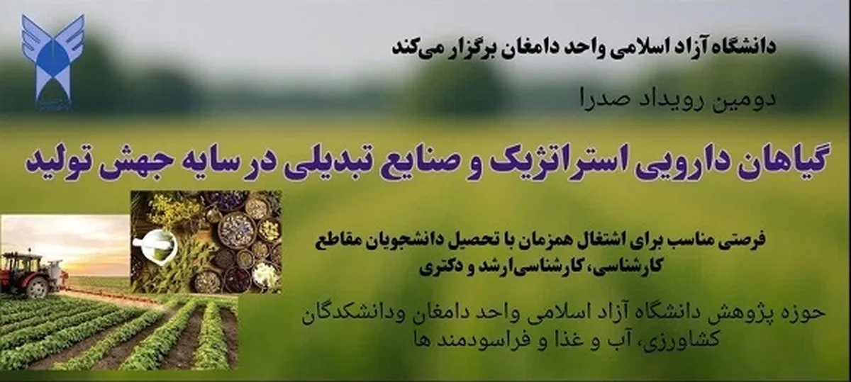 وی افزود: رویداد صدرا در دانشگاه آزاد اسلامی واحد دامغان با تمرکز ویژه بر فعالیتهای دانشکده موضوعی کشاورزی، صنایع غذایی و فراسودمندها، گیاهان دارویی استراتژیک و صنایع تبدیلی طراحی شده است.