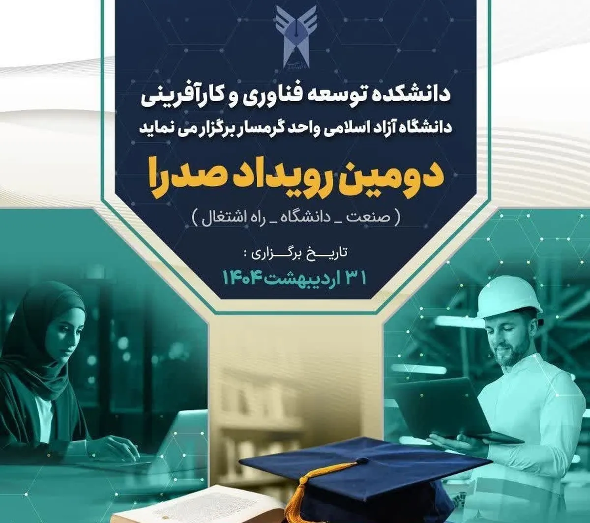 مهدی جورابلو رئیس دانشکده توسعه فناوری و کارآفرینی دانشگاه آزاد اسلامی واحد گرمسار در گفتوگو با خبرنگار آنا از برگزاری دومین رویداد بزرگ صدرا در تاریخ سی و یکم اردیبهشت ۱۴۰۴ در این واحد دانشگاهی خبر داد و اظهار کرد: این رویداد که با نام کامل(صنعت، دانشگاه، راه اشتغال) شناخته میشود، ابتکاری از دانشگاه آزاد اسلامی برای ایجاد ارتباط بین دانشگاه، صنعت و بازار کار است.