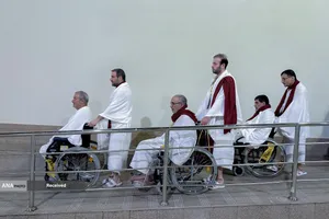 کاروان ویژه جانبازان سرافراز با احرام عشق از مسجد شجره راهی بیت الله الحرام شدند.