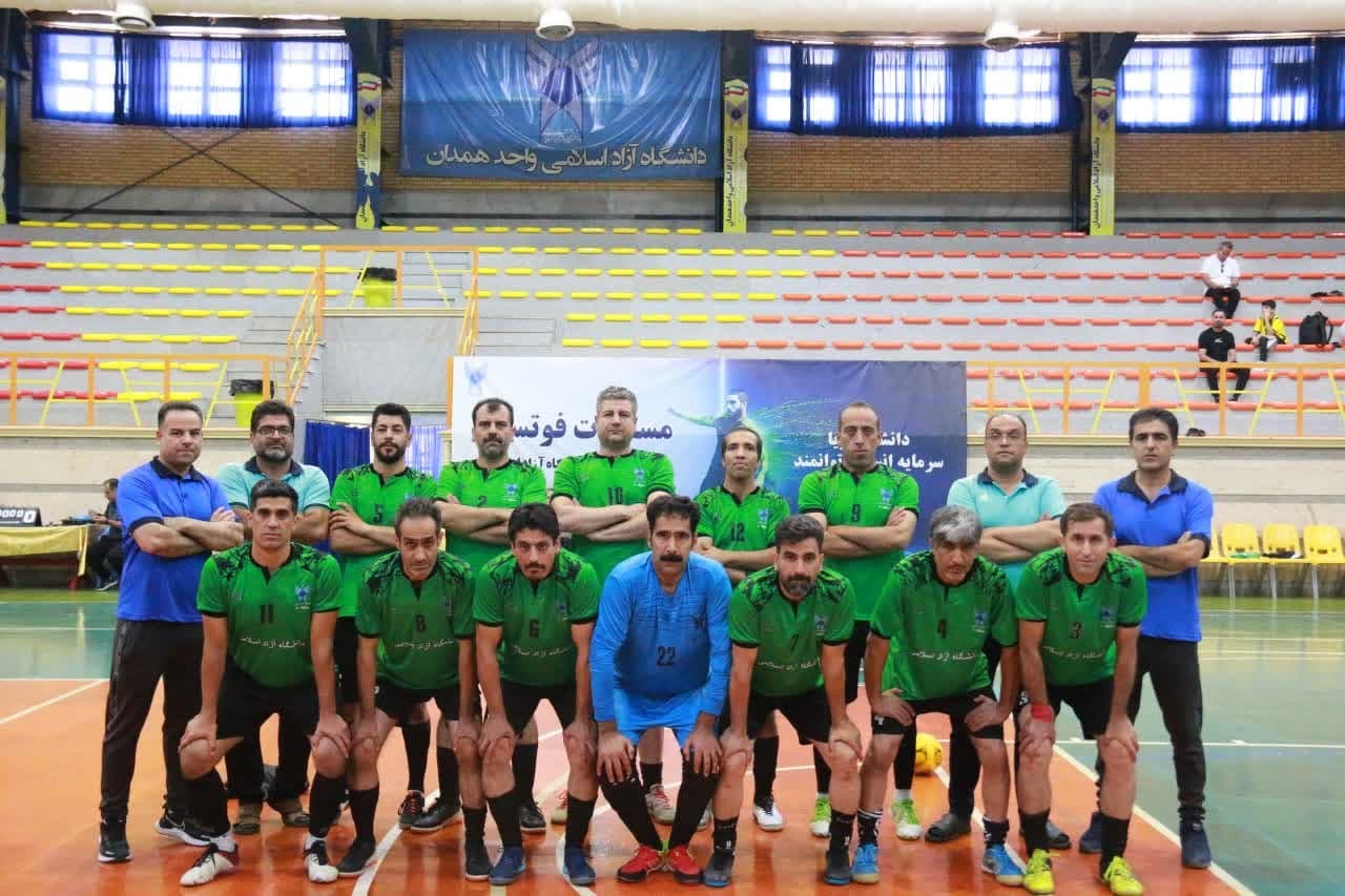 مسابقات سراسری فوتسال کارکنان و اعضای هیئت‌علمی دانشگاه آزاد اسلامی به مناسبت چهل‌وسومین سالگرد تأسیس این دانشگاه با شعار «دانشگاه پویا، سرمایه انسانی توانمند» برگزار شد و صبح امروز با برگزاری دیدار فینال در سالن امام علی (ع) دانشگاه آزاد اسلامی همدان، به ایستگاه پایانی رسید و تیم منطقه ۵ (اراک) با غلبه بر تیم منطقه ۷ (تهران) در ضربات پنالتی، عنوان قهرمانی این دوره از رقابت‌ها را از آن خود کرد.