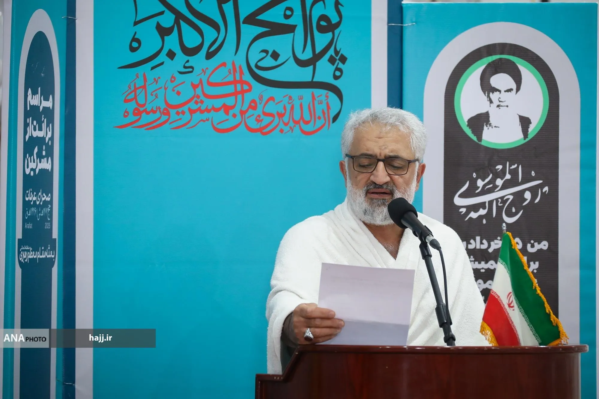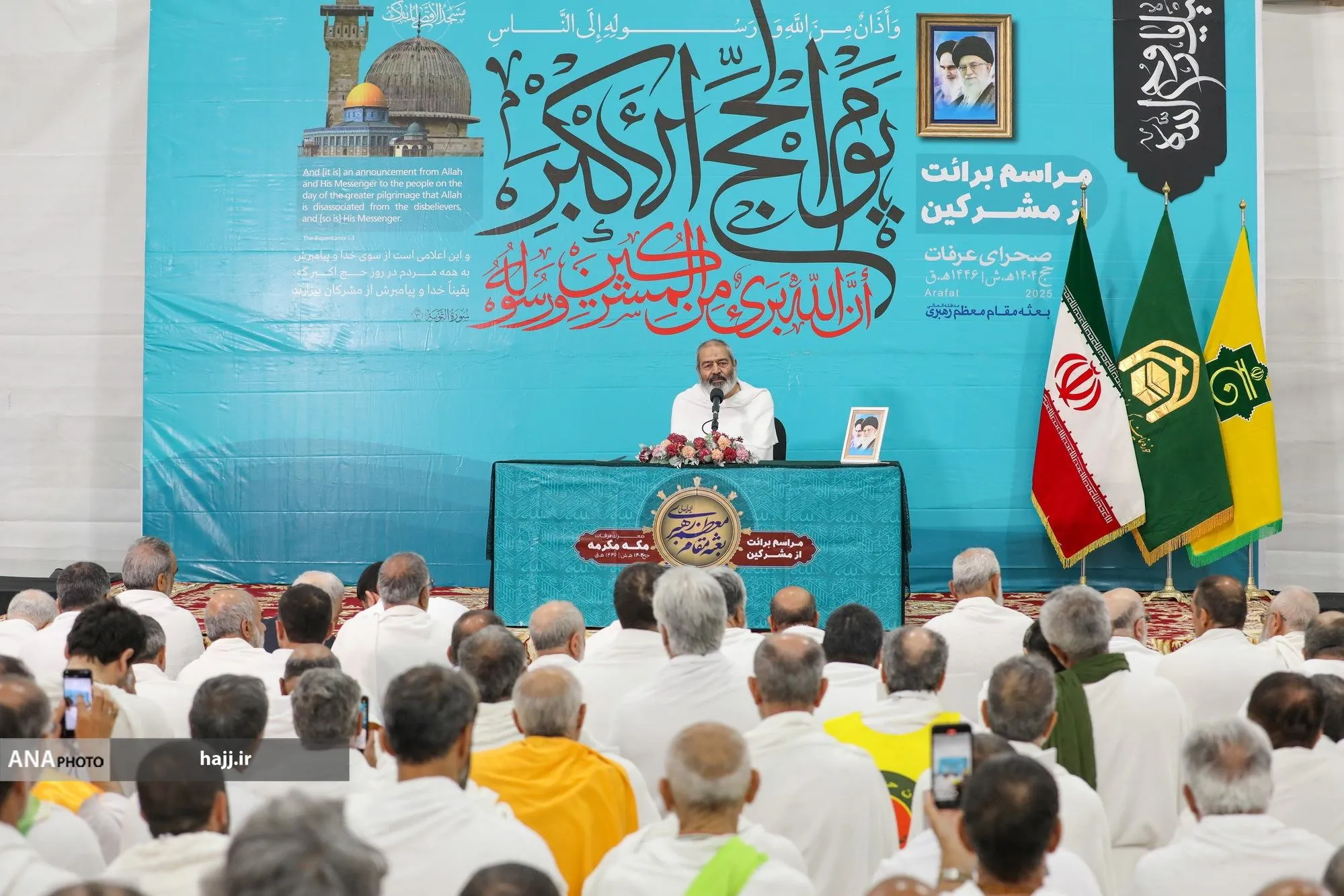 پیش از ظهر امروز پنجشنبه همزمان با روز عرفه، مراسم برائت از مشرکین با شکوه خاصی در صحرای عرفات برگزار شد. علاوه بر چادر بزرگ بعثه مقام معظم رهبری، این مراسم در ۵۷ مجموعه دیگر نیز در صحرای عرفات برگزار شد. در این مراسم که با حضور زائران ایرانی، نماینده ولی فقیه در امور حج و زیارت، رئیس سازمان حج و زیارت، سفیر جمهوری اسلامی ایران در عربستان و نمایندگان بیوت مراجع معظم تقلید برگزار شد، حجاج بیت الله الحرام در میانه اعمال حج و در اقتدا به حضرت ابراهیم(ع) خشم و انزجار خود را از ظالمان و مشرکان عصر حاضر نشان دادند.
