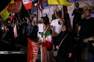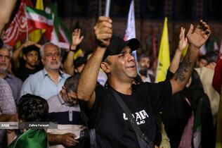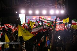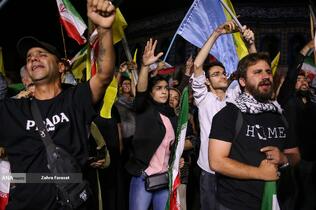 تجمع مردم تهران در حمایت از عملیات موشکی «وعده صادق ۳» شامگاه جمعه ۲۳ خرداد ۱۴۰۴با حضور اقشار مختلف مردم در میدان انقلاب اسلامی برگزار شد.
