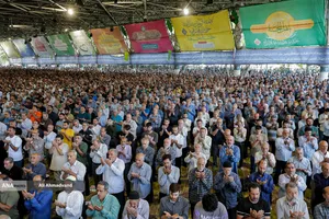 همزمان با روز هشتم تجاوز رژِیم جعلی و فاسد صهیونیستی به کشورمان و مقاومت مردم همیشه در صحنه و انقلابی ایران اسلامی بعد از نماز جمعه امروز راهپیمایی جمعه نصر و خشم پس از اقامه نماز جمعه برگزار شد.
