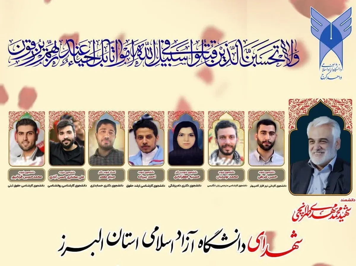 در این بیانیه توضیح داده شده است: افتخار میکنیم که در دانشگاه آزاد اسلامی واحد کرج تحصیل میکنیم، جایی که هفت نفر از همکلاسیها برای اثبات حقانیت ایران اسلامی و رسوا کردن استکبار جهانی در مجامع علمی بینالمللی به شهادت رسیدهاند. همچنین مفتخریم که هشت نفر از دانشجویان فارغالتحصیل این دانشگاه را تقدیم انقلاب کردهایم.