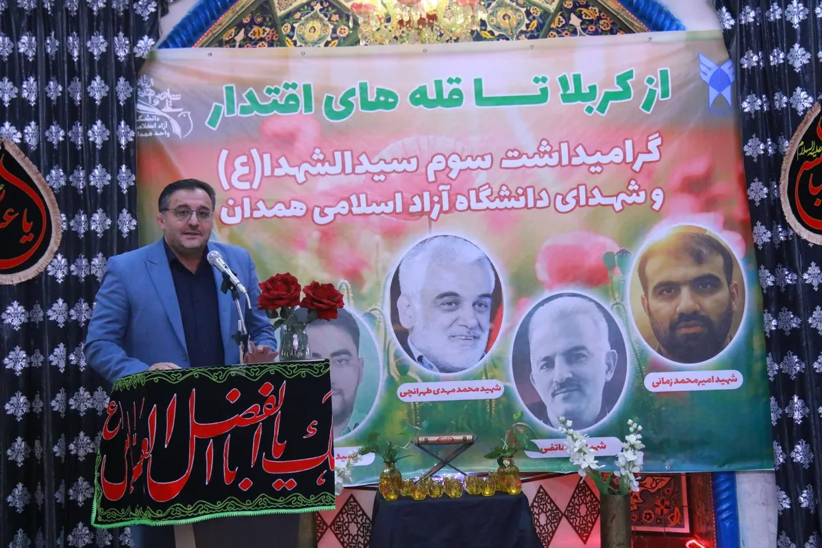 به گزارش خبرنگار آنا، همزمان با سومین روز شهادت حضرت اباعبدالله‌الحسین علیه‌السلام، مراسم معنوی و پرشور «از کربلا تا قله‌های اقتدار» با حضور استادان، دانشجویان، کارکنان و خانواده‌های معظم شهدا در مسجد دانشگاه آزاد اسلامی همدان برگزار شد.