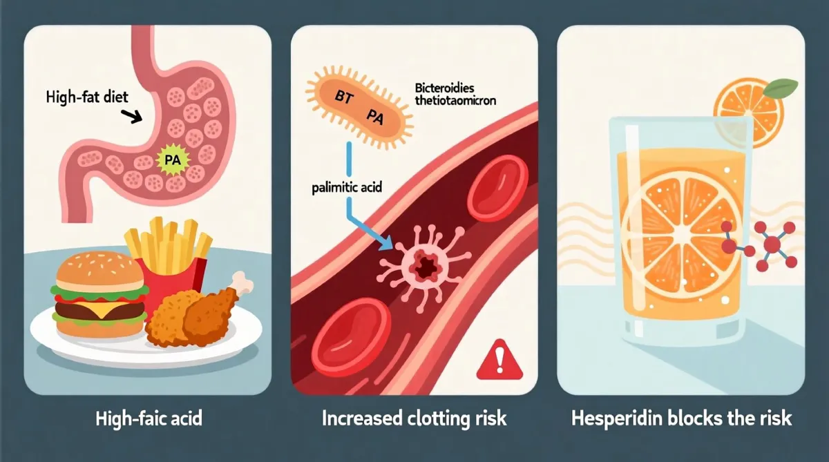 هسپریدین، یک فلاونوئید (نوعی ترکیب گیاهی طبیعی) غذایی فراوان و مقرون به صرفه است که میتواند اتصال اسید پالمیتیک به پروتئین C فعال شده را مسدود کند و از انعقاد بیش از حد خون ناشی از اسید پالمیتیک یا انتقال باکتری BT جلوگیری کند. این امر مکانیسم ضد انعقادی جدیدی را در این ترکیب غذایی آشکار میکند.