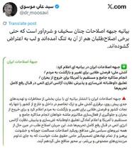 دکتر سید علی موسوی: بیانیه «سخیف و شرمآور» خوانده و اظهار داشت حتی اصلاحطلبان داخلی از آن به تنگ آمدهاند.