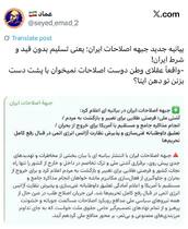 سید عماد: آن را «تسلیم بدون قید و شرط ایران» خواند و خواستار واکنش عقلای اصلاحات شد.