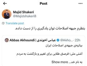 مجید شاکری: توان یادگیری جبهه اصلاحات را از دست رفته دانست.