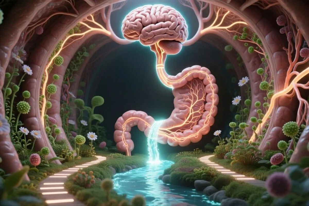 روده و مغز از طریق «محور روده-مغز» به طور مستقیم ارتباط دارند. باکتری‌های مفید روده (پروبیوتیک‌ها) مواد شیمیایی خاصی تولید می‌کنند که بر مغز تأثیر می‌گذارند و حدود ۹۰٪ این هورمونِ آرامش‌بخش یعنی سروتونین در روده ساخته می‌شود. باکتری‌های خوب به تولید آن کمک می‌کنند.