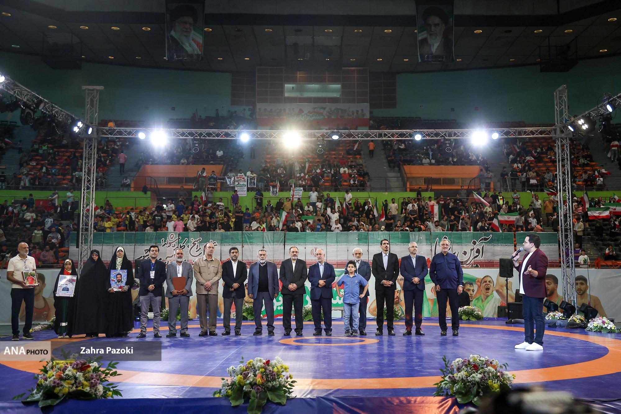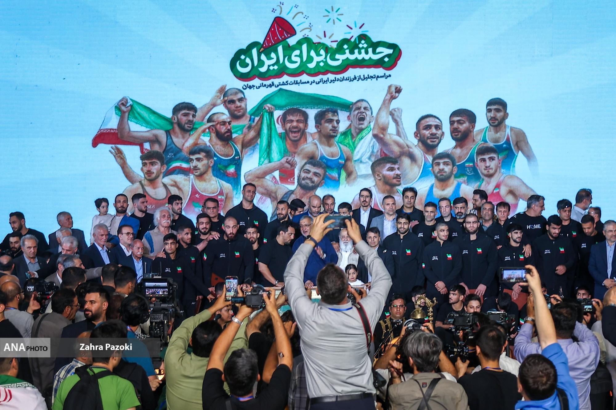 جشن ملی تجلیل از قهرمانان کشتی فرنگی و آزاد ایران شامگاه سهشنبه با حضور مردم و جمعی از مسئولان کشور در ورزشگاه آزادی برگزار شد.